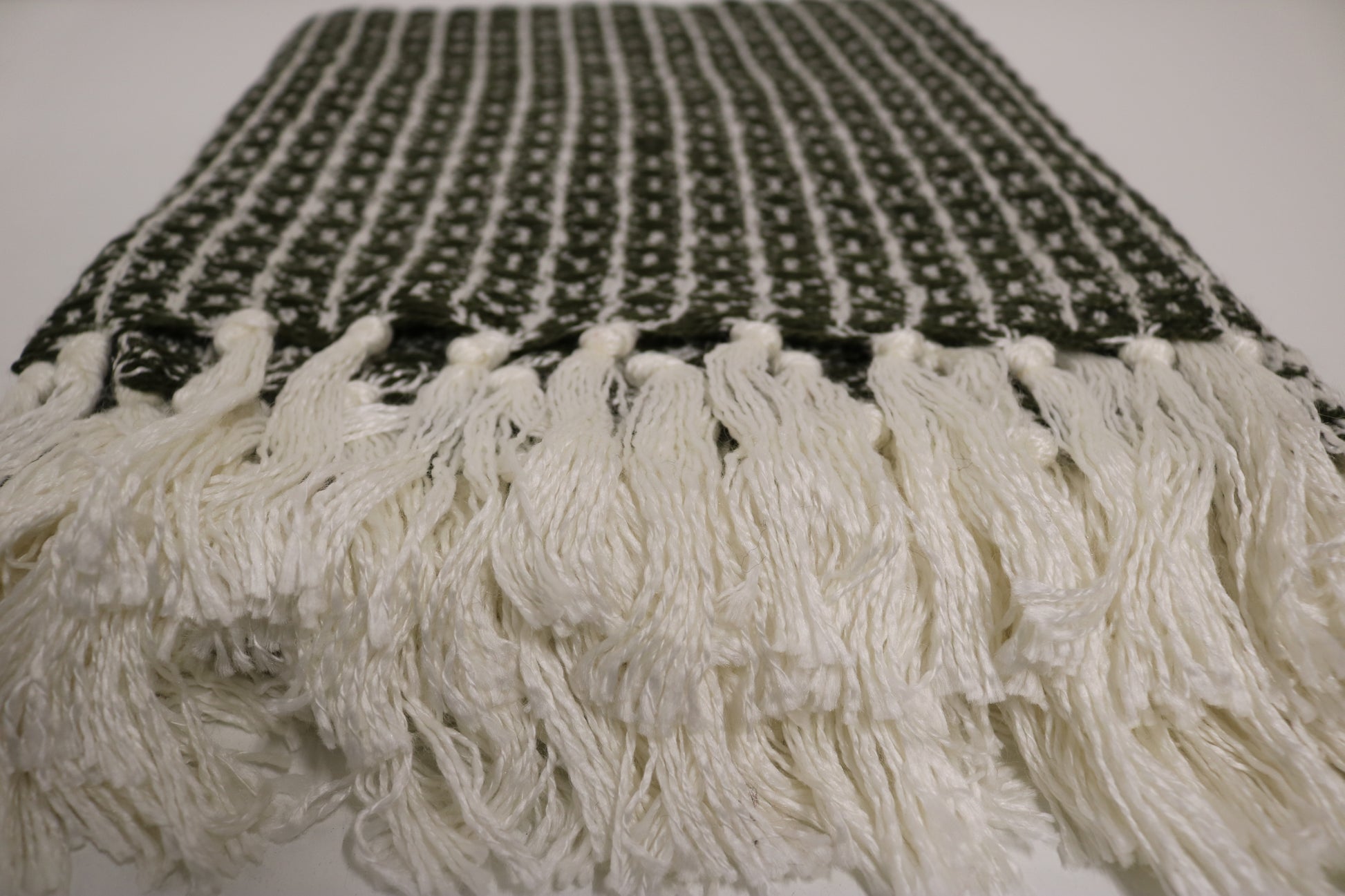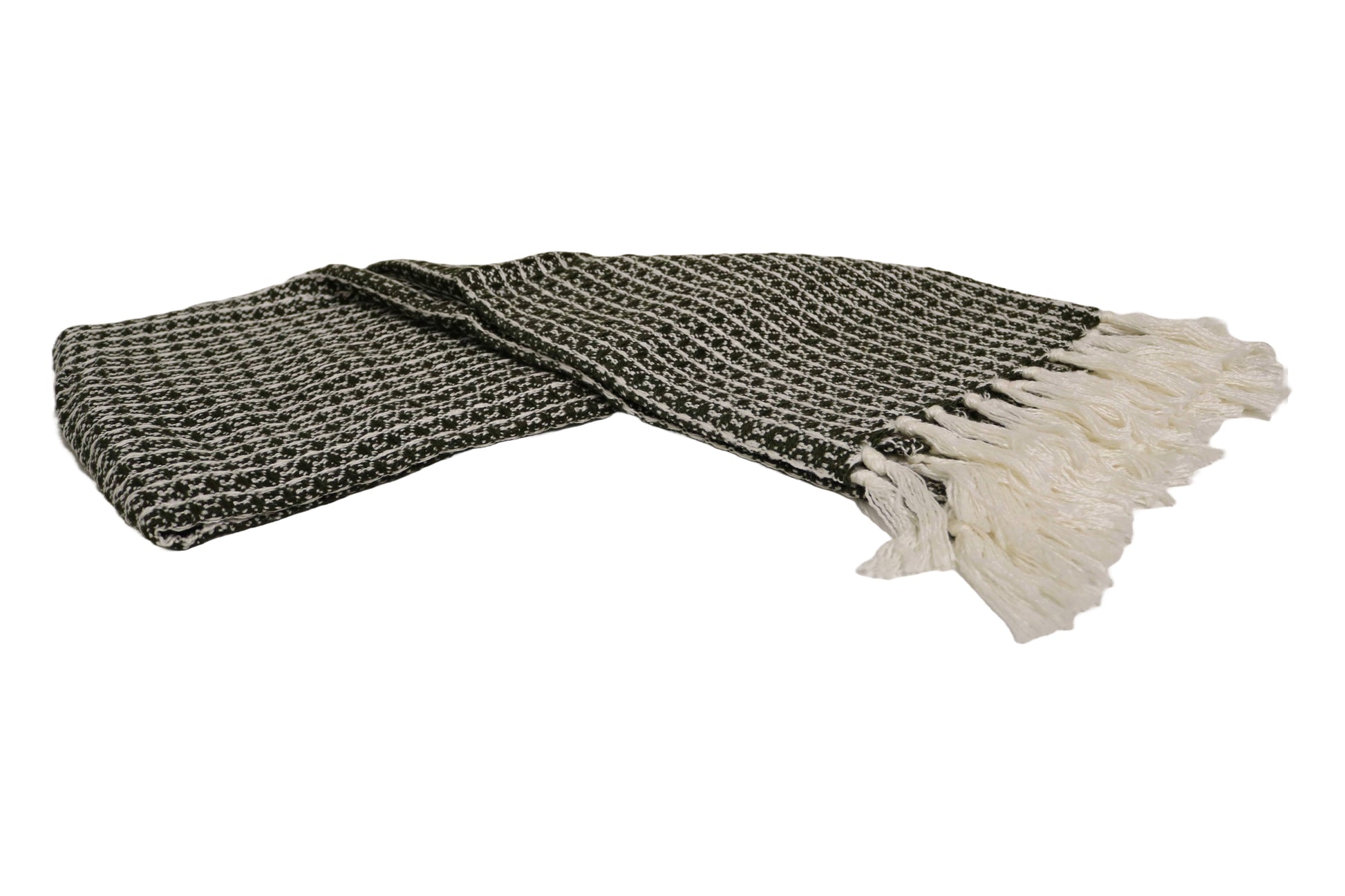 Handcrafted Wool & Cotton Throw Blanket Green